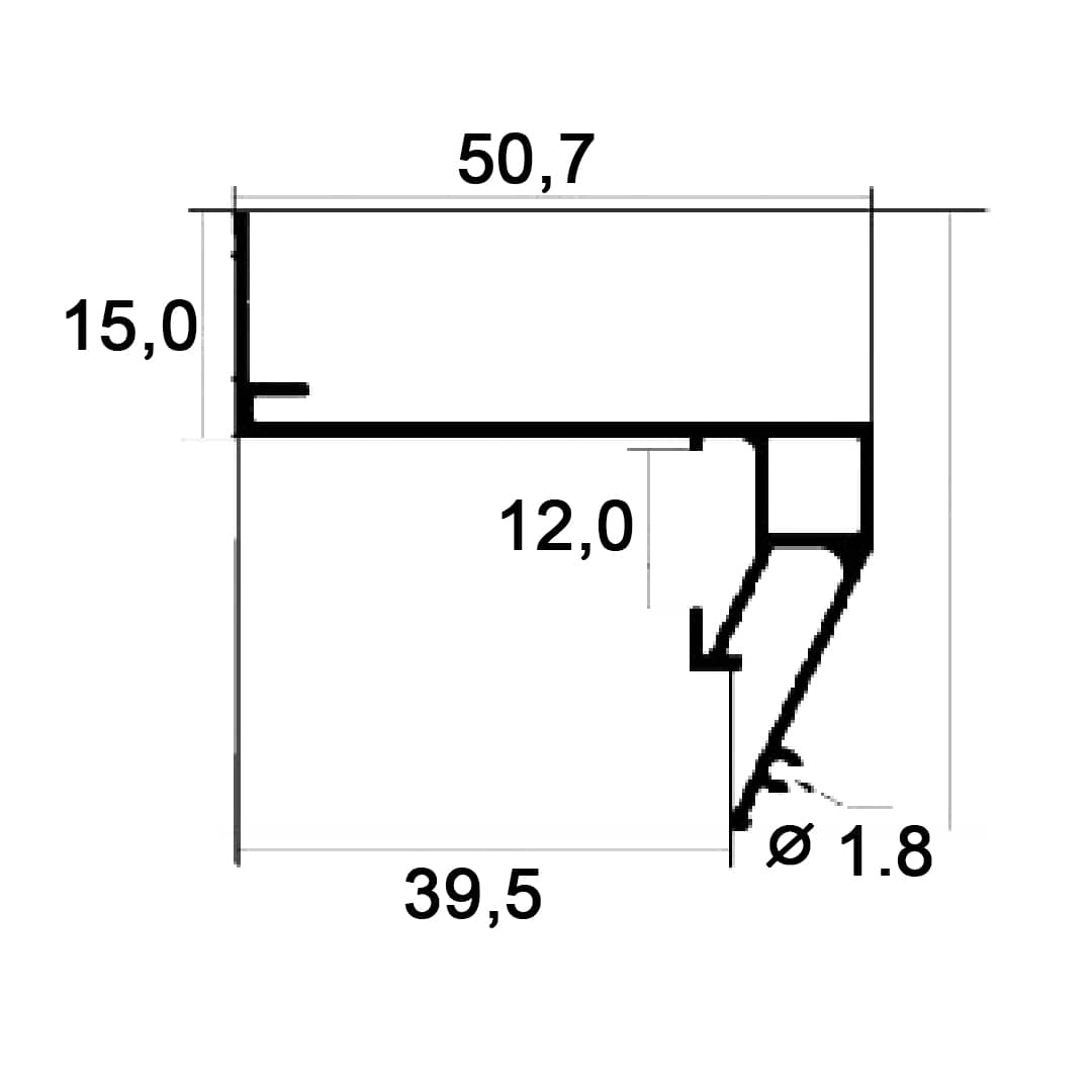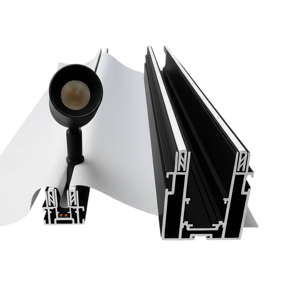 Сепарационный профиль необходим для соединения двух натяжных полотен, располагающихся в двух противоположных сторонах друг от друга. Его применяют в помещениях большой площади, в которых невозможно натянуть ПВХ-пленку одним полотном.